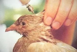 頸部皮下正確的注射方法是: 一人保定雞只, 另一個人負責注射, 注射時用拇指和食指把雞頸部 (靠近翅膀處) 皮膚捏起使皮膚與頸部肌肉分離后, 注射器針頭以小于 30°角度注射到拇指與食指之間的皮下。 注射后的油苗應(yīng)分布在頸部肌肉和皮膚之間。