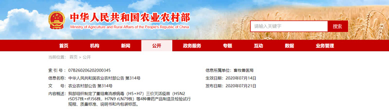 信息來源:中華人民共和國(guó)農(nóng)業(yè)農(nóng)村部公告 第314號(hào)